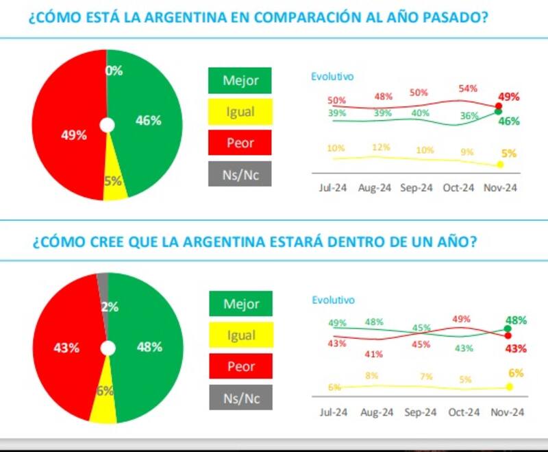 En la encuesta realizada en los primeros días de noviembre relevaron que la imagen positiva del Presidente alcanza el 49% y se ubica como el político mejor valorado, mientras que la negativa se ubicó en 50%. Esto representa un retroceso de 3 puntos respecto de la medición de octubre, cuando había alcanzado el 53% de desaprobación.