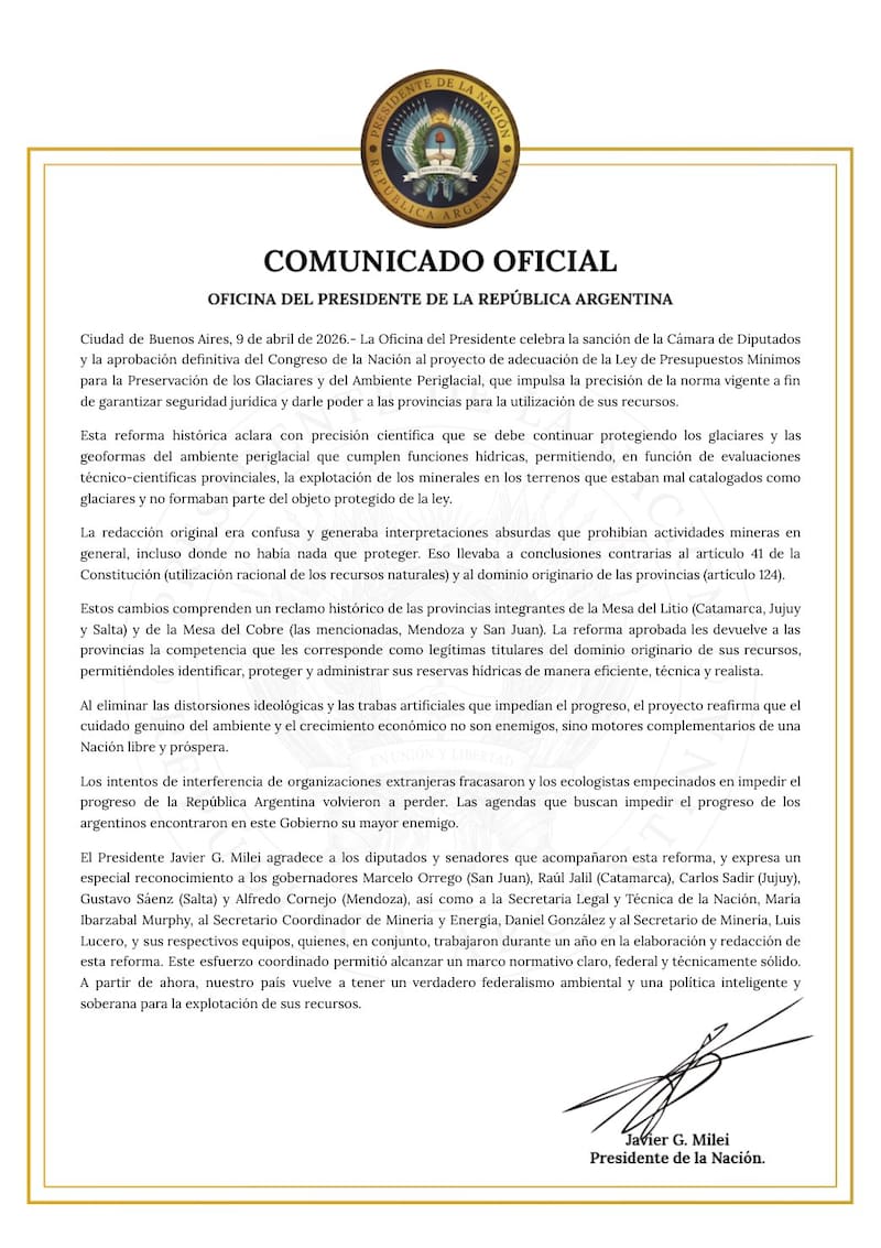 En un contexto de polémicas e internas en el Gobierno nacional, Javier Milei se anotó una victoria en el Congreso con la aprobación de la reforma a la Ley de Glaciares. La pregunta que se abre a partir de ahora es la posibilidad de judicialización de la nueva ley y qué posibilidades tienen de prosperar. ¿Qué espera el sector minero?
