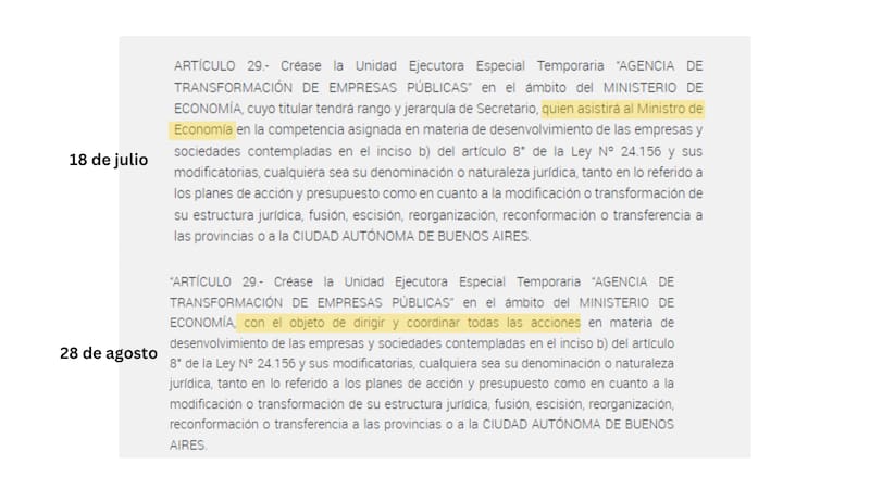 En el Decreto (644/24, publicado el 18 de julio) que le dio sus primeras funciones, el abogado solo podía "asistir" o debía coordinar con las áreas sin tener mayor incidencia en aspectos clave. Ahora, afirman cerca suyo, podrá "acelerar" los procesos de "privatización, liquidación, fusión o transferencia".
