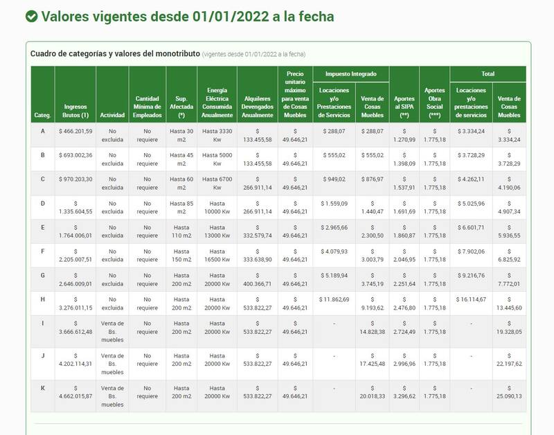 - Trabajador Independiente Promovido: para aquellos que realizan una sola actividad y cumplen ciertos requisitos. No pagan la parte impositiva y tienen la opción de abonar o no la obra social.