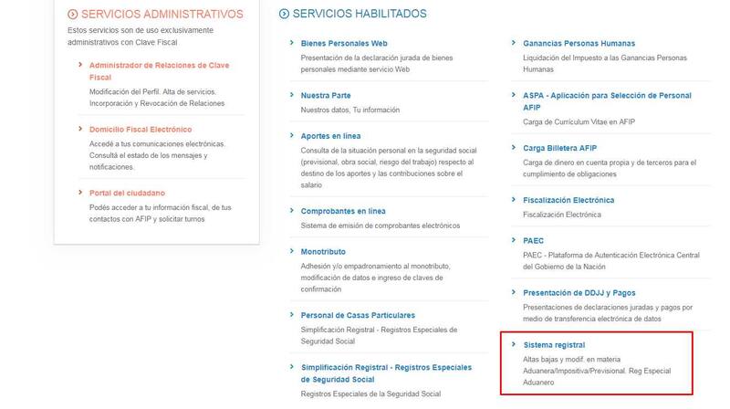 El siguiente paso consiste en ingresar con la clave fiscal en la web de AFIP al sistema registral dentro del panel general y luego seleccionar la pestaña "Registro Tributario". Se desplegará un abanico de opciones, de las cuales se debe elegir "Actividades". Luego aparecerá una ventana donde se debe ingresar la fecha en la que comienza la actividad del contribuyente y una serie de categorías y rubros entre las que el usuario se debe inscribir.