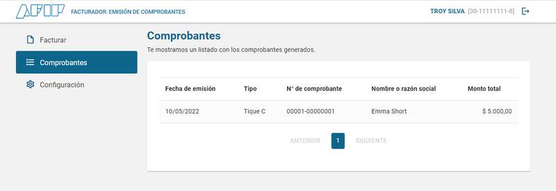 Desde el botón "Comprobantes" en el menú lateral, vas a encontrar todos los comprobantes que hayas emitido.