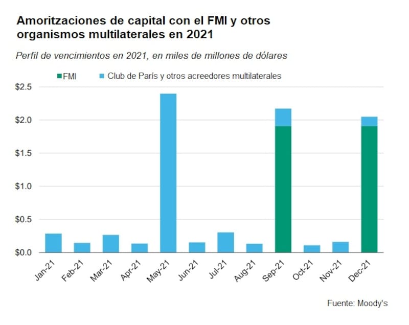 Según las estimaciones de Moody's, Argentina recibirá DEGs por una suma equivalente a u$s 4300 millones que le permitirán aliviar una gran parte de los compromisos de capital con el FMI de este año y postergar la consecución de un nuevo programa para después de las elecciones legislativas de octubre.