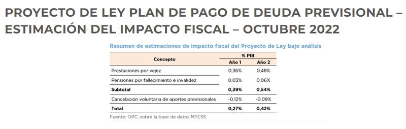 De acuerdo a las estimaciones realizadas por el Centro de Estudios de la Oficina de Presupuesto del Congreso (OPC), la PPDP tendría un costo fiscal de casi medio punto del Producto Bruto Interno (PBI) al absorber las dos moratorias ya vencidas: 24.476 y 26.970.