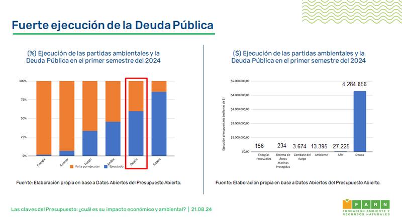 Como contrapartida, "en 6 meses se ejecutaron menos de $ 2 de cada $ 100 presupuestados para la promoción de las energías renovables. La transición energética queda relegada a las decisiones del mercado", ponderaron desde FARN.