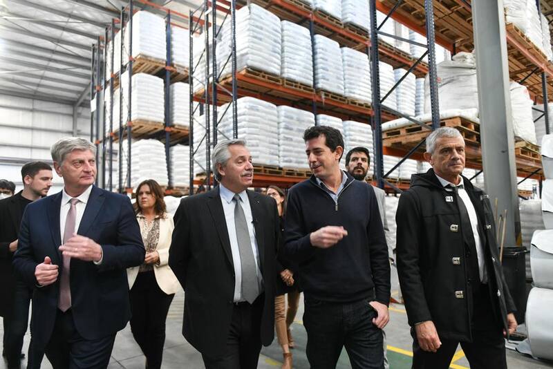 El presidente Alberto Fernández recorrió este mediodía en la ciudad pampeana de General Pico las instalaciones de la fábrica de silobolsas de la Asociación de Cooperativas Argentinas (ACA), ubicada en la Zona Franca.