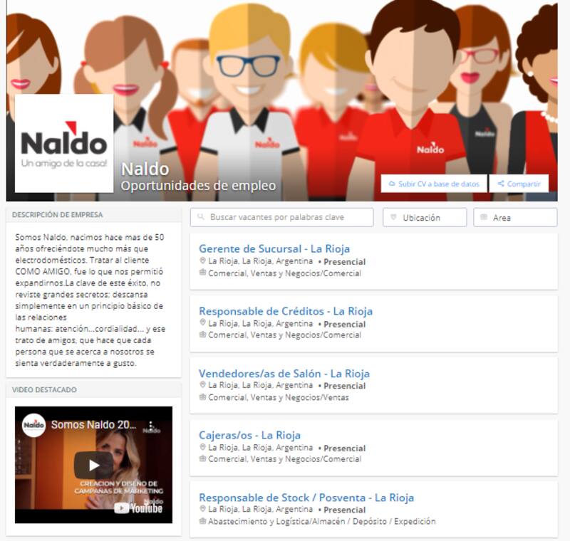 La cadena de tiendas de artículos electrónicos y tecnológicos Naldo lanzó una búsqueda online para incorporar nuevos empleados en distintas ciudades de todo el país.
