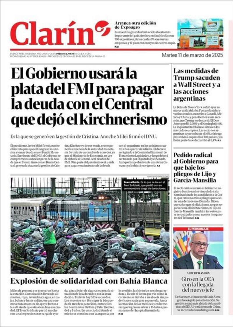 En la portada de Clarín que compartió el ministro se lee como título principal: "El Gobierno usará la plata del FMI para pagar la deuda con el Central que dejó el Kirchnerismo".