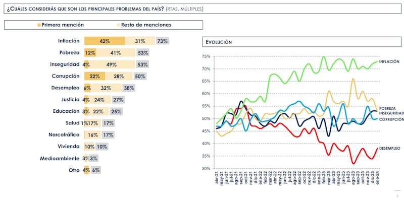 "La agenda de preocupaciones no sufre modificaciones, y la inflación continúa siendo el principal problema", destaca el mismo informe que se publicó luego de conocerse la inflación de diciembre, que rondó el 25,5%. El 73% de los consultados mencionó ese tema en primer lugar.