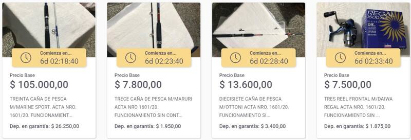 Todos los bienes la DGA pone a disposición de las subastas son aquellos que no pueden ser donados, en este caso, se rematan 54 lotes de diferentes artículos de pesca: cañas, reeles y rollos de tanza, por ejemplo.