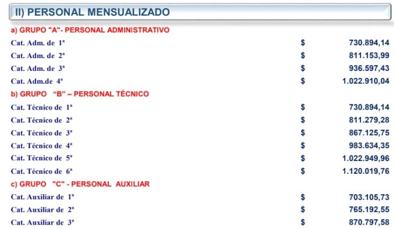 Sin nueva suba confirmada. y a la espera de lo que sucederá con la posible continuidad del pago de la suma fija no remunerativa, la escala vigente es la de agosto 2025.