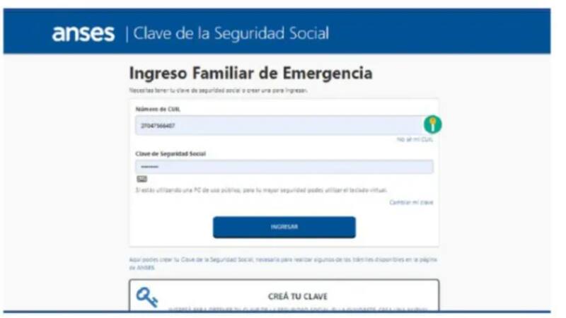 Ingresar al sitio web oficial de anses.gob.ar. Desde allí, se debió seleccionar la opción Ingreso Familiar de Emergencia.