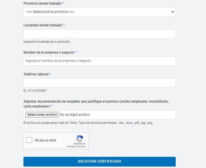 También deberá cargarse, en formato digital, documentación que avale la relación laboral informada. Puede ser una carta con membrete del empleador o un recibo de sueldo en caso de trabajadores en relación de dependencia o el comprobante de monotributo o trabajador autónomo.