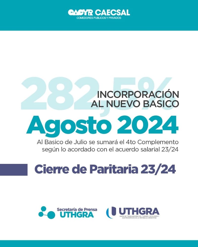Asimismo, la nueva paritaria 2024-25, que comenzó a negociar el gremio liderado por Luis Barrionuevo, consiguió un aumento del 20%. Este se aplicará en dos tramos: