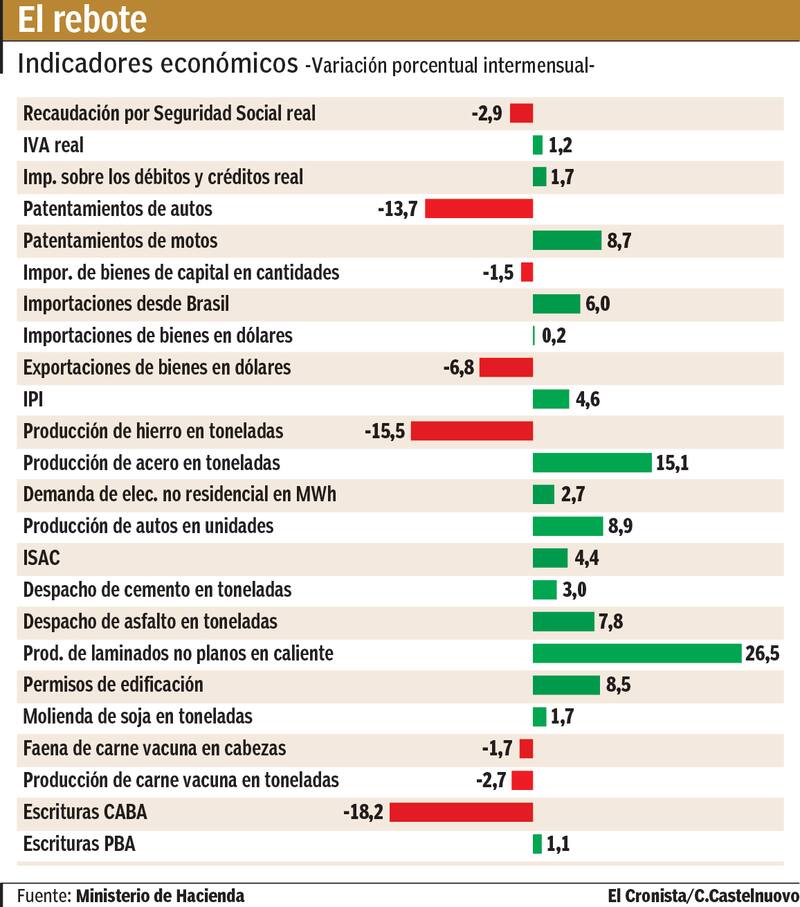 El análisis oficial considera desde los datos de producción agropecuaria e industrial, la construcción, la actividad inmobiliaria y el comercio exterior, hasta el consumo, la inversión y el nivel de empleo. En el caso del consumo, por caso, se evalúan los indicadores de ventas en centros de compra y supermercados, patentamiento de autos y motos, e incluso la recaudación asociada al consumo, como los montos ingresados en concepto de IVA y del impuesto al Cheque.