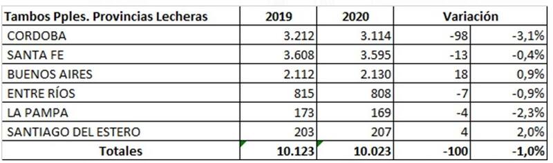 En 2002 había en el país unos 15.000 tambos, hoy apenas superan los 10.000 pero muchas de las unidades más pequeñas están en riesgo, aseguran fuentes del sector.