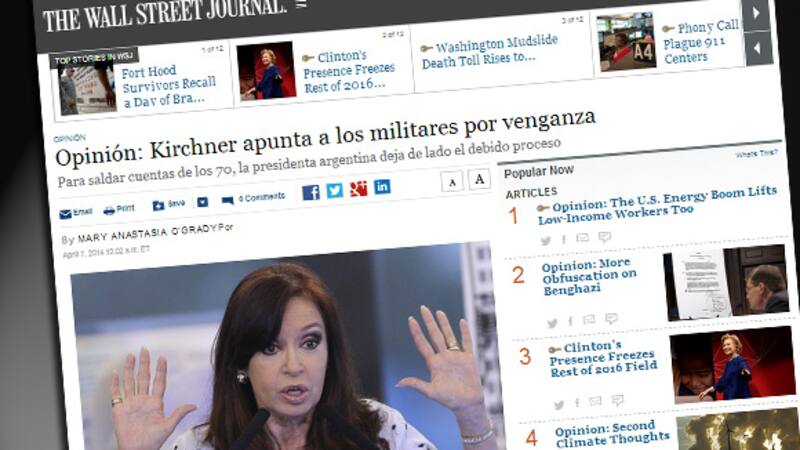 El diario The Wall Street Journal señala hoy que la presidenta Cristina Kirchner lleva a la Argentina por un sendero “iliberal”al negarles su debido proceso a unos 1.600 prisioneros que eran miembros de las fuerzas armadas o la policía en los años 70, durante la dictadura militar en el país.