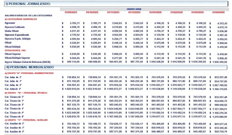 A partir del nuevo acuerdo, la escala salarial de septiembre 2025 pasó a tener carácter obligatorio y retroactivo, reemplazando su condición anterior de “referencial”. Sobre esta nueva base se calculan todos los incrementos posteriores.