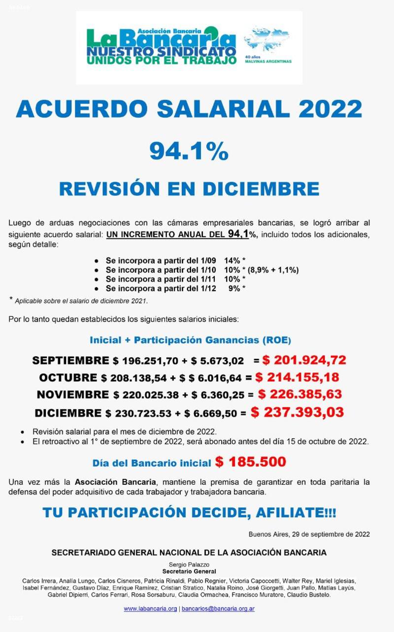 PARITARIA BANCARIOS 2022: El mes a mes de los aumentos