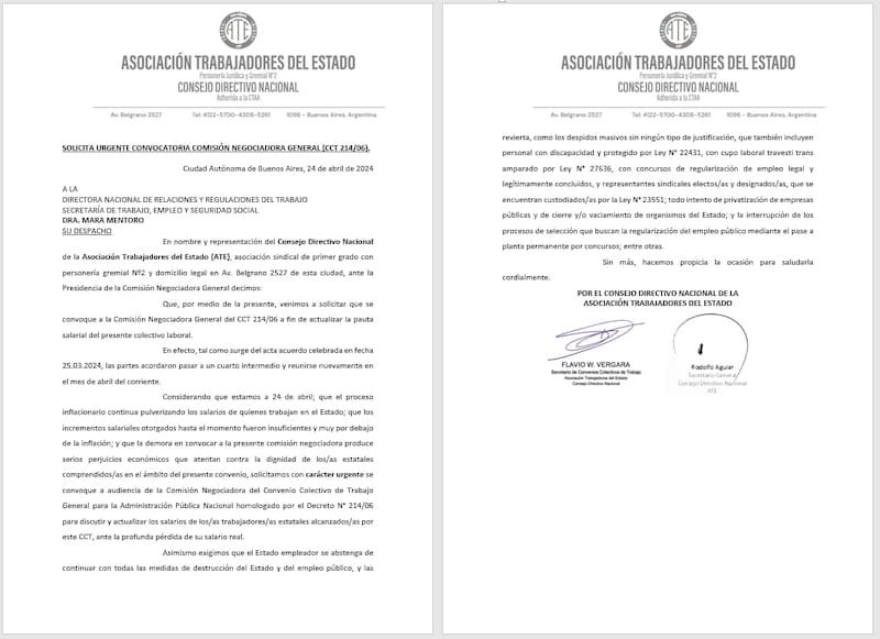 "El Gobierno está incurriendo en un incumplimiento grave. Está violando el principio de buena fe que debe regir las negociaciones entre las partes. No podemos dejar que se genere este antecedente negativo en el ámbito paritario", añadió el secretario general de ATE Nacional.
