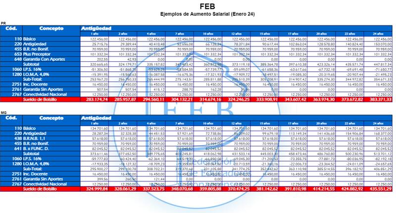 La Federación de Educadores Bonaerenses (FEB) publicó los montos salariales con incremento que se liquidarán en febrero 2024 como parte de la última revisión paritaria.