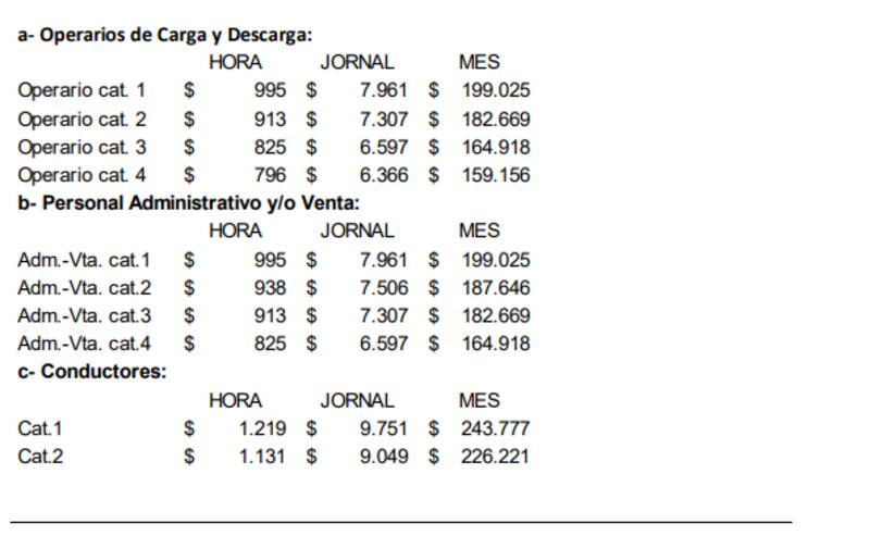 Finalmente, en enero 2023 los trabajadores del rubro verán las siguientes escalas salariales: