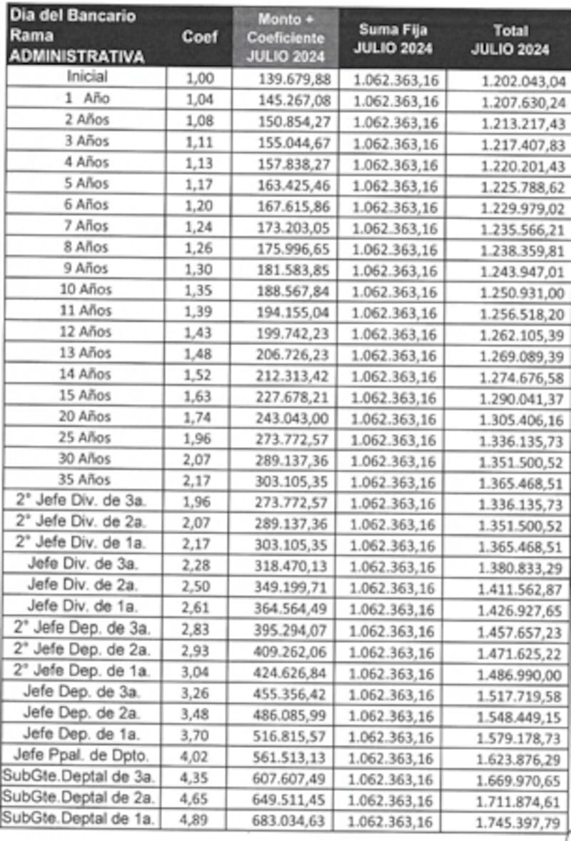 Paritarias bancarios: con aumento, cómo quedan las escalas de julio 2024