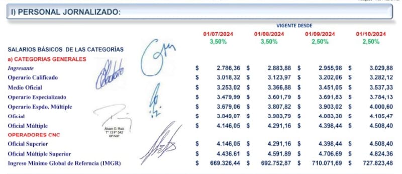 Paritarias UOM: con aumento, cómo quedan las escalas de agosto, septiembre y octubre 2024