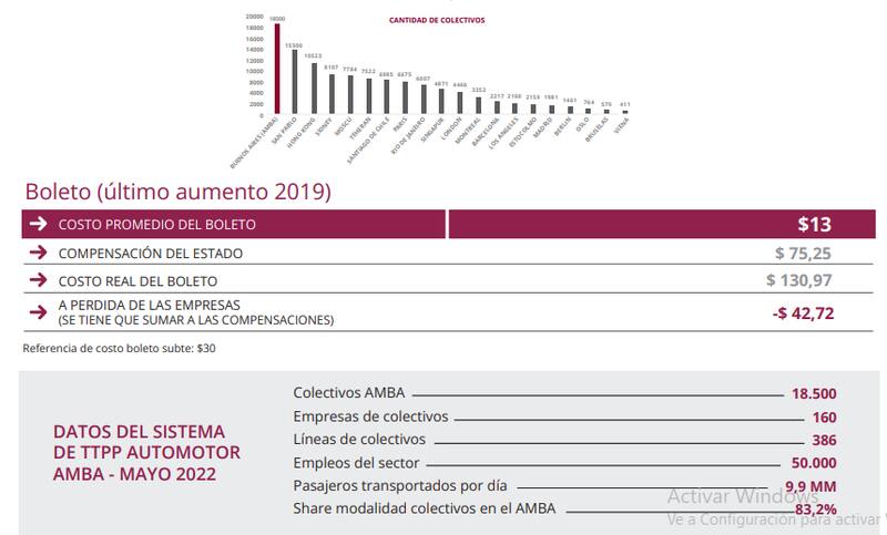 El costo real del boleto es de $ 130,97 por pasaje; el promedio es de $ 13 (aunque el mínimo sea de $ 18) y la compensación del Estado es de $ 75,25, por lo que las empresas llevan a pérdida unos $ 42,72.
