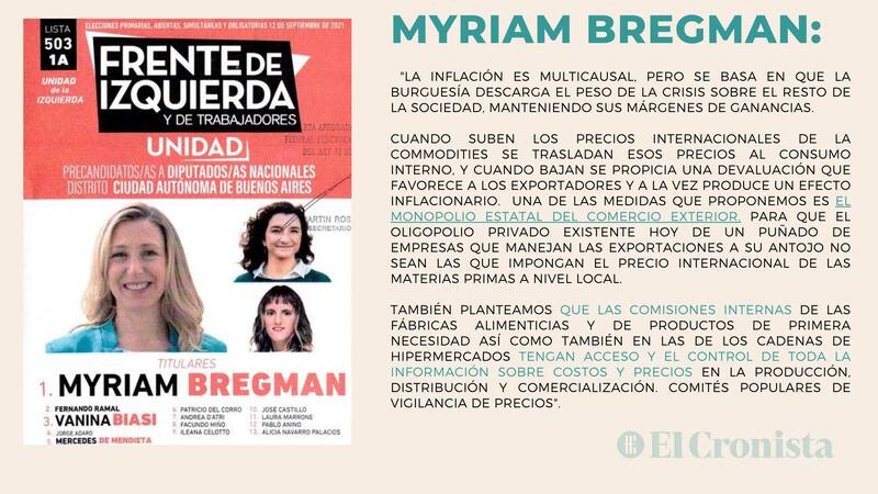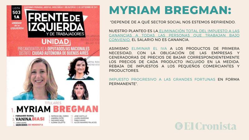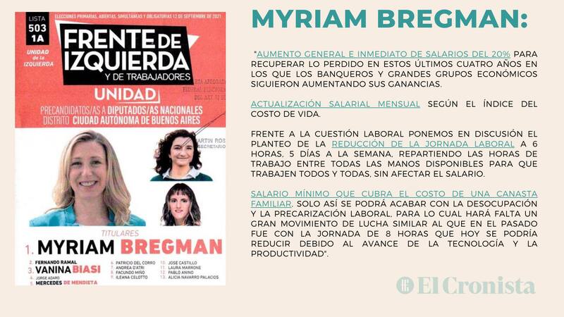"Aumento general e inmediato de salarios del 20% para recuperar lo perdido en estos últimos cuatro años en los que los banqueros y grandes grupos económicos siguieron aumentando sus ganancias", apuntó Myriam Bregman, precandidata del Frente de Izquierda en la Ciudad de Buenos Aires.