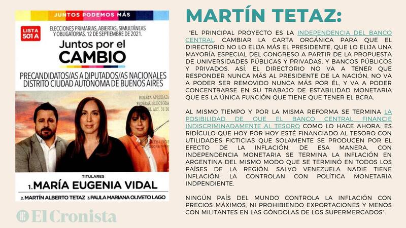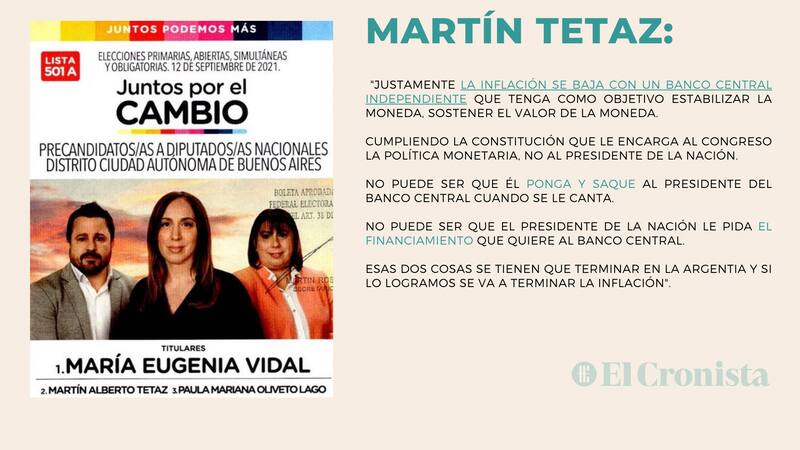 "Justamente la inflación se baja con un Banco Central independiente que tenga como objetivo estabilizar la moneda, sostener el valor de la moneda. Cumpliendo La Constitución que le encarga al Congreso la política monetaria, no al presidente de la nación", señaló Tetaz.