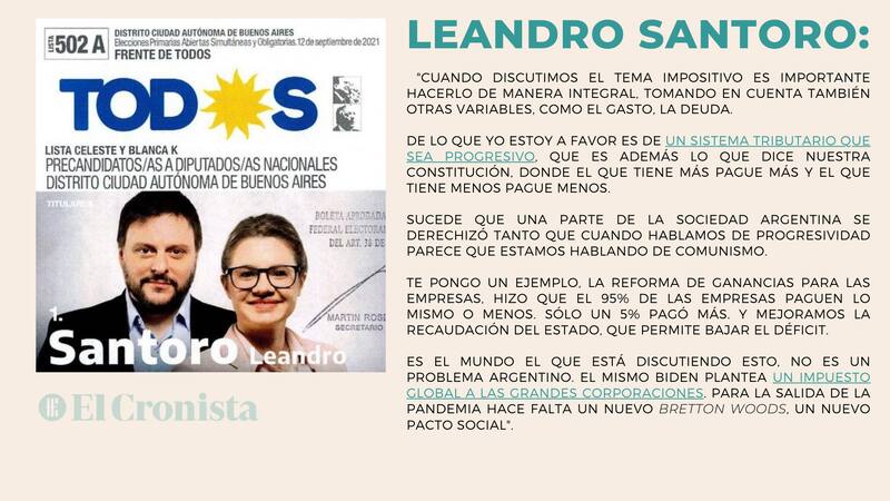 "Vamos a ampliar la ley de Compre Argentino para lograr que más pymes nacionales sean proveedoras del Estado, fomentar que desarrollen sectores productivos novedosos para ahorrar divisas, y que agreguen mayor valor agregado a partir de la promoción de la inversión en investigación, tecnología, innovación", explicó Leandro Santoro, precandidato por el Frente de Todos.