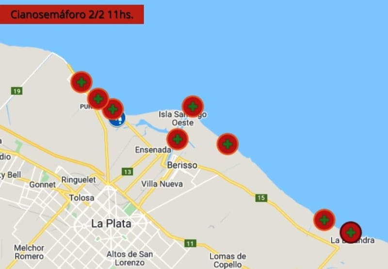 La Subsecretaría de Recursos Hídricos de la Provincia de Buenos Aires, a través de la Mesa Interinstitucional de Cianobacterias, emitió hoy un Alerta Rojo por la presencia de cianobacterias en la zona del balneario La Balandra, en la localidad bonaerense de Berisso.
