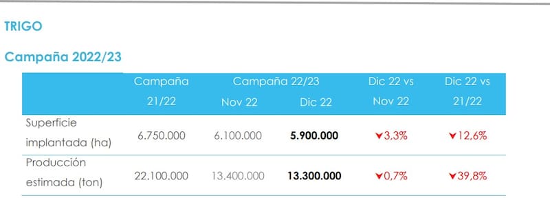 De concretarse estas nuevas estimaciones oficiales, la cosecha del cereal, fuertemente afectada por la sequía y heladas tardías, caería 39,8% respecto a la campaña 2021/22; y el área sembrada cayó 12,6% hasta las 5,9 millones de hectáreas.