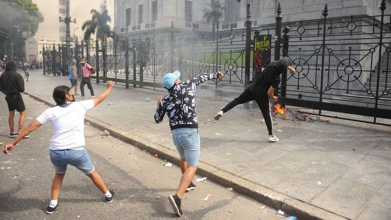 En el mismo escrito, la abogada señaló que "la agresión se encontró selectivamente direccionada sobre el margen correspondiente a la intersección de las calles Hipólito Yrigoyen y Entre Ríos, específicamente donde se encuentran las oficinas de la H. Presidencia del Senado de la Nación, las que quedaron claramente señaladas por pintura y especialmente dañadas en sus paneles exteriores".