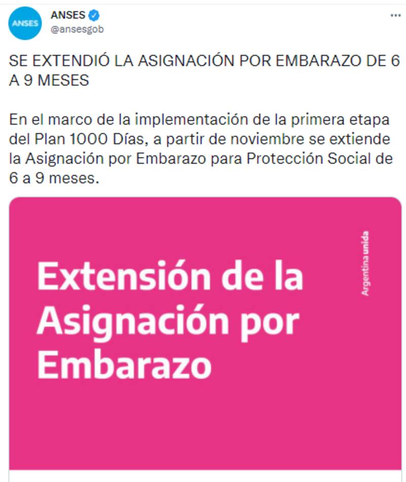 El Plan Mil Días de ANSES estipula el cobro de nueva asignación por Cuidado de Salud Integral, que consiste en el pago de la AUH y la extensión de la AUE, "con el objetivo de garantizar el derecho a la protección en situaciones específicas de vulnerabilidad para las niñas y niños".
