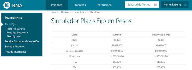 Tomando en cuenta la nueva TNA, para poder generar ganancias que alcancen los $ 100.000 al mes se necesita invertir un capital inicial de $ 1.032.000, logrando ganancias por $ 100.089,86 a 30 días de realizado el depósito a plazo fijo.