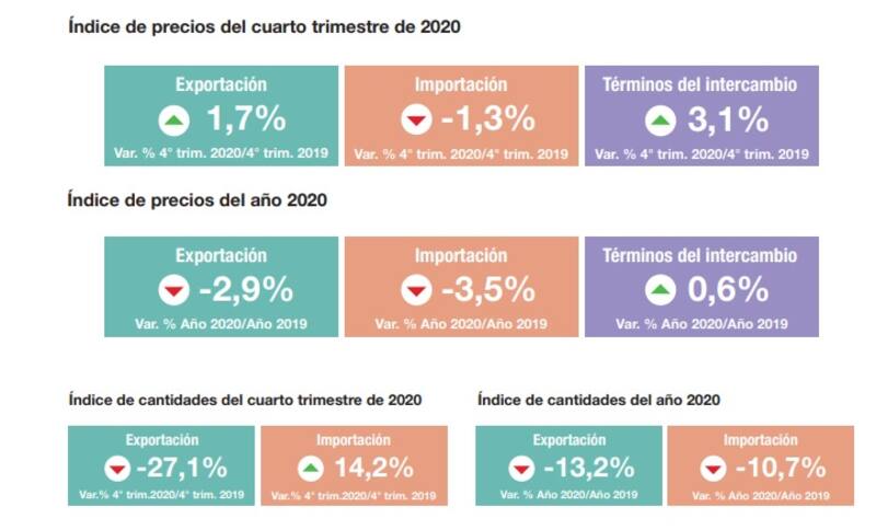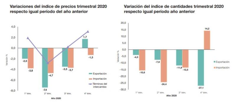 De este modo, el índice de los términos del intercambio, que mide la relación entre los índices de precios de exportación e importación, dio un salto del 3,1% en el período octubre-diciembre de 2020 en relación al año precedente.