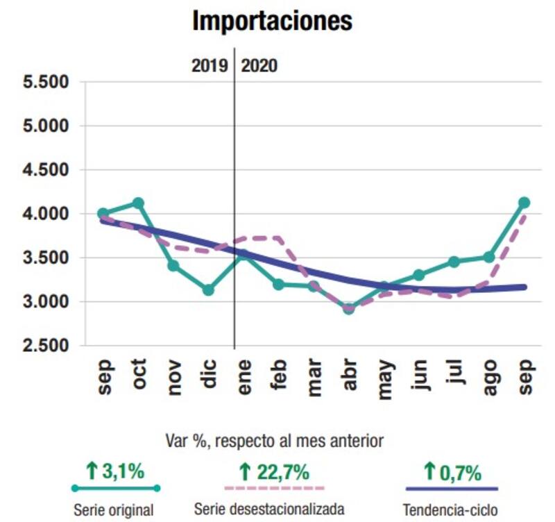 Al mismo tiempo, mientras la tendencia ciclo de las exportaciones continúa en baja, la de las importaciones está en alza.