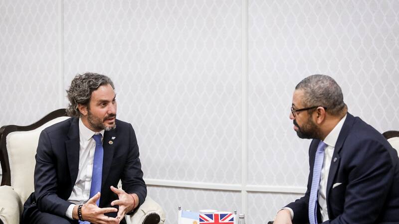 Cafiero se reunió con su par británico James Cleverly en Nueva Delhi y le notificó la decisión del gobierno de Alberto Fernández de ponerle fin al pacto "Foradori-Duncan". Asimismo, el funcionario planteó reiniciar la discusión por la soberanía de las Islas Malvinas en una primera reunión entre ambos países en la ONU, en Nueva York.