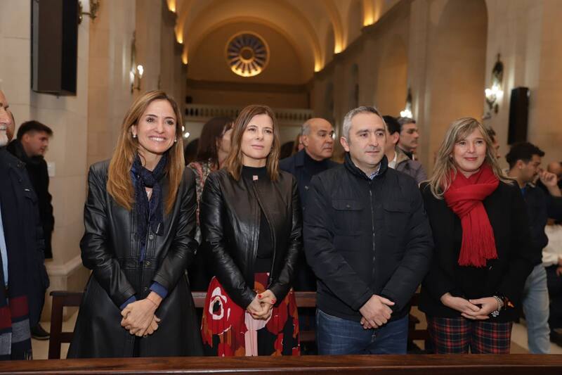 En la primera fila, como en el resto del templo, se juntaron albertistas y kirchneristas duros. A la sobrina nieta de Evita, la ministra de gobierno bonaerense Cristina Alvarez Rodríguez la flanquearon el "Cuervo" Larroque, Saintout y Victoria Tolosa Paz y su marido, Enrique "Pepe" Albistur, pareja amiga del presidente Alberto Fernández y la subsecretaria de Asuntos Parlamentarios Cecilia Gómez Mirada. Hubo saludos, bromas y sonrisas y un agradecimiento de la diputada nacional al secretario general de La Cámpora por haberse sumado a la misa.