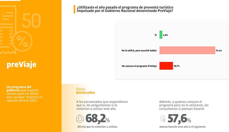 La iniciativa del Gobierno para fomentar el turismo interno que ha sido fuertemente perjudicado por la pandemia es de público conocimiento para los argentinos. Sin embargo, si se hace un análisis porcentual aunque 8 de cada 10 conocen el programa, menos del 4% de la sociedad lo aprovechó, de acuerdo al último relevamiento de Taquion.