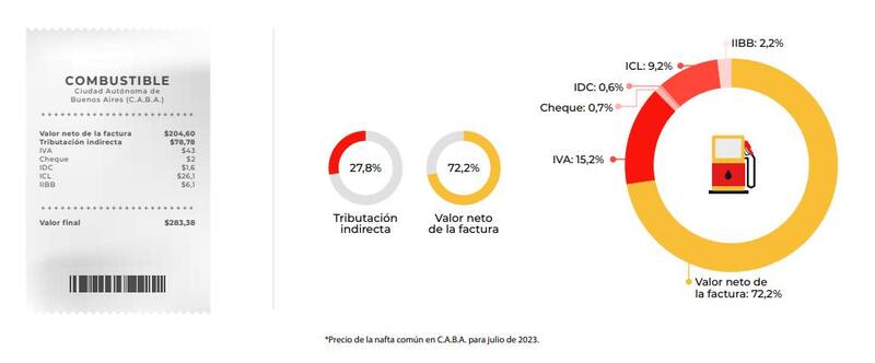 Como referencia, para explicar por qué por cada litro de nafta que se adquiere en Córdoba, con el mismo dinero, un porteño puede comprar 1.14 litros, se analizó la carga tributaria indirecta que existe en ambas ciudades del país.