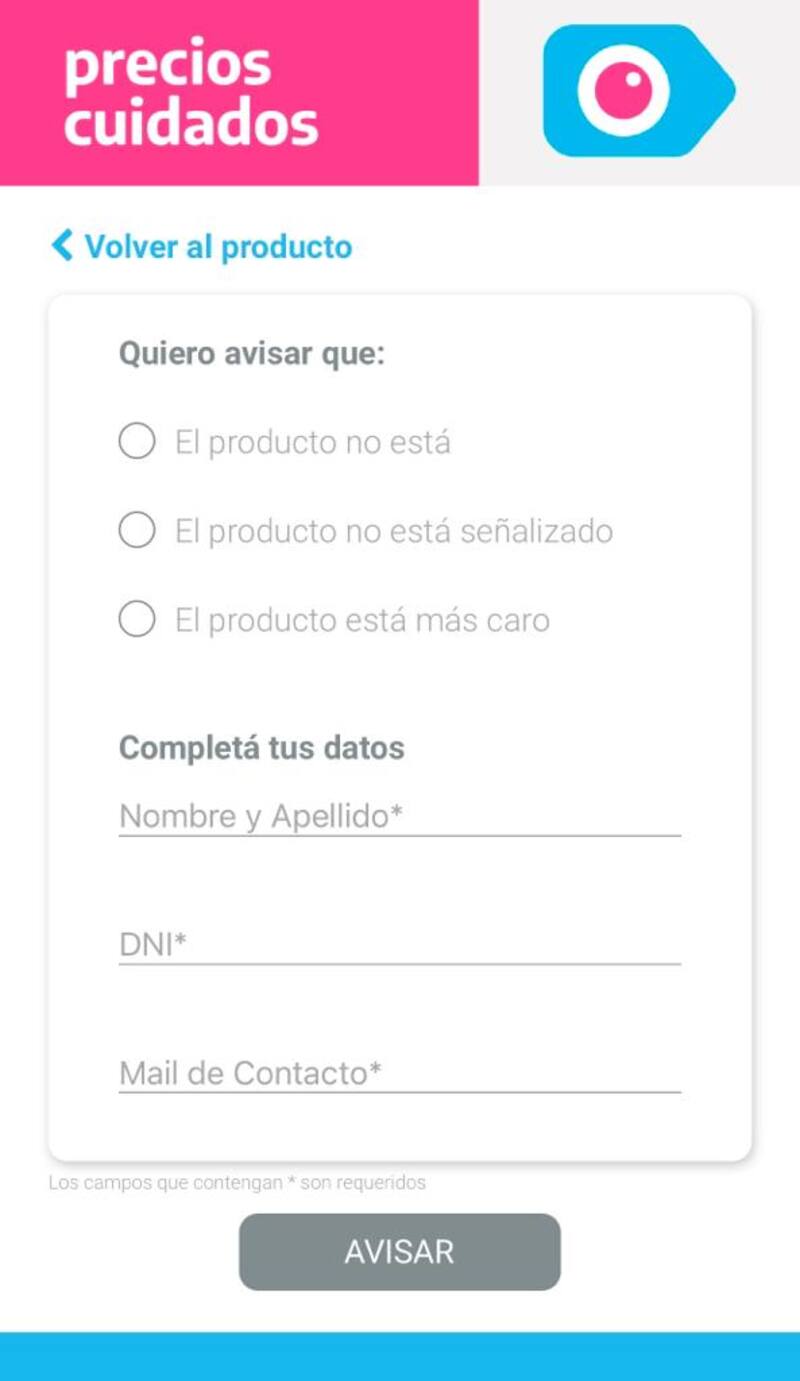 El programa permite a los consumidores dar aviso ante un eventual precio incorrecto o faltante de producto. Una vez que seleccionan el producto y luego presionan la opción de "Enviar aviso", allí podrán elegir entre tres opciones: "el producto no está", "el producto no está señalizado" o que "el producto está más caro" de los previsto.