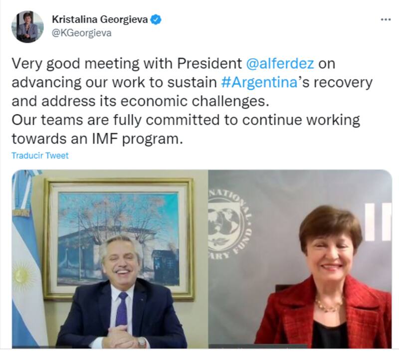 El encuentro virtual se dio en la previa a que la Argentina le pague otros 1900 millones de dólares al organismo, que se girarán la semana que viene. El país hará uso de los Derechos Especiales de Giro (DEG) que emitió el FMI en agosto para combatir los efectos de la pandemia.