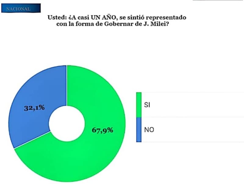 En tanto, ante la consulta sobre el rumbo que toma el país en materia de gobierno, el 89,4% contestó que no quiere volver al pasado, contra apenas un 10,6% que manifestó lo contrario. Datos que reflejan un alto apoyo al oficialismo, de cara a las elecciones 2025.