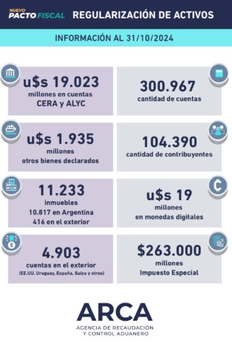 En esta etapa del blanqueo ingresaron $263.000 millones en concepto de impuesto especial; y se declararon u$s 19 millones en criptomonedas.