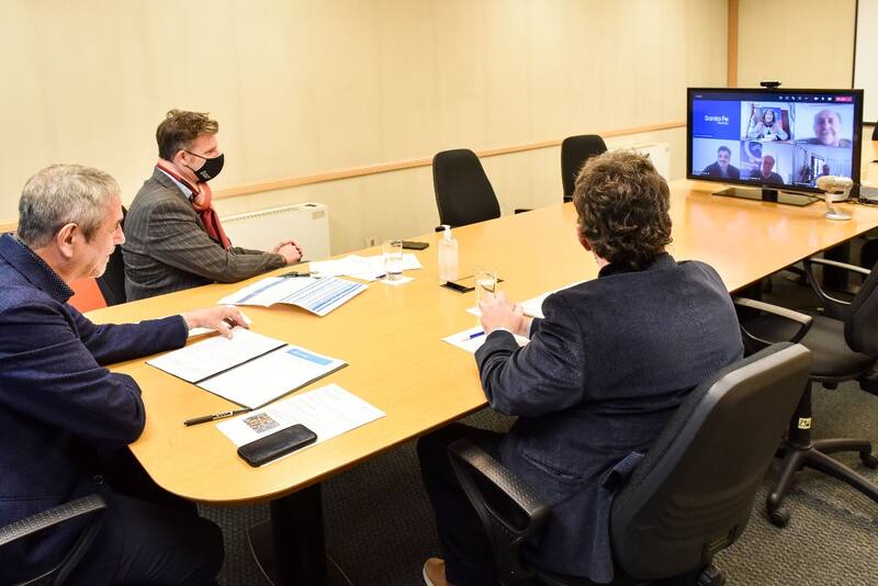 Luego, fue el turno por videoconferencia, del gobernador de Santa Fe, Omar Perotti y la ministra de Infraestructura, Servicios Públicos y Hábitat de la provincia, Silvina Frana. Con ellos se rubricaron los contratos de obra para ejecutar 198 unidades funcionales nuevas en el Desarrollo Urbanístico "Estación Cambios" de la capital provincial, y otras 39 en la localidad de Gálvez.