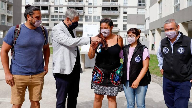 El ministro de Desarrollo Territorial y Hábitat, Jorge Ferraresi, entregó hoy viviendas construidas en la Ciudad Autónoma de Buenos Aires a través de Desarrollos Urbanísticos de Procrear II.