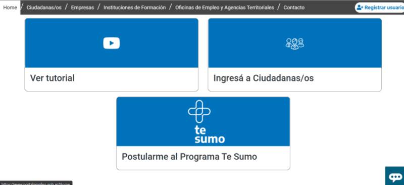 El programa Te Sumo está dirigido para los jóvenes de 18 a 24 años de edad que hayan terminado sus estudios escolares, mediante el mismo van a recibir la ayuda del Estado para lograr un puesto de trabajo en una Pyme que puede ser de manera directa o luego de un entrenamiento laboral.